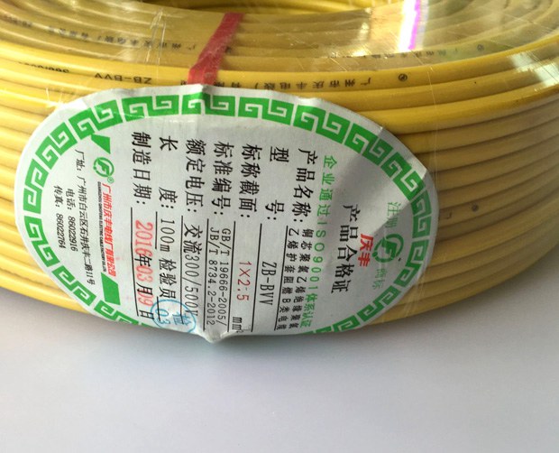 廣州慶豐電纜ZB-BVV阻燃B級家裝電線
